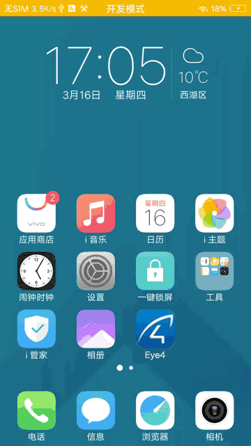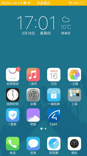 4.多任务界面锁定Eye4操作步骤:点击手机左下角功能键-进入多任务界面找到Eye4-下拉拖拽Eye4界面出现锁图标即可,参见下面GIF动画: